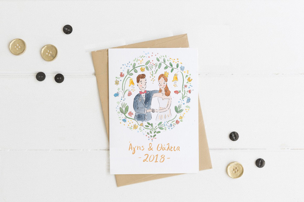 I was recently asked to illustrate a personalised set of wedding invitations/thank you cards. An example of the finished illustration is below.